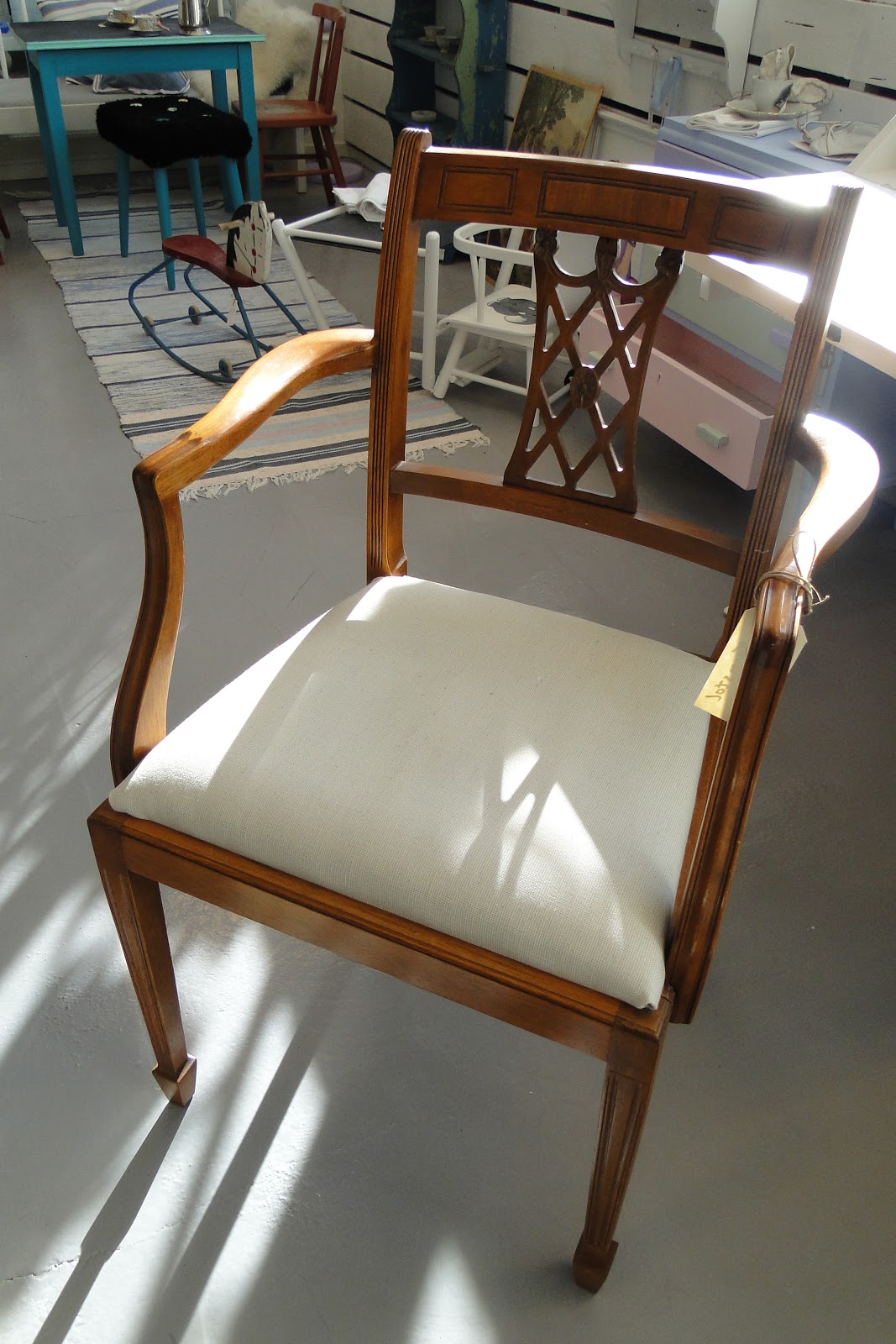 Mycket originell antik fotölj. Klädd med syntet fårull. Söta hjul. Kudden ingår.